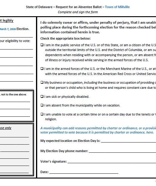 NOTE: "Request for an Absentee Ballot" (affidavit) form is due no later than noon, Friday March 6, 22026. (See directions …